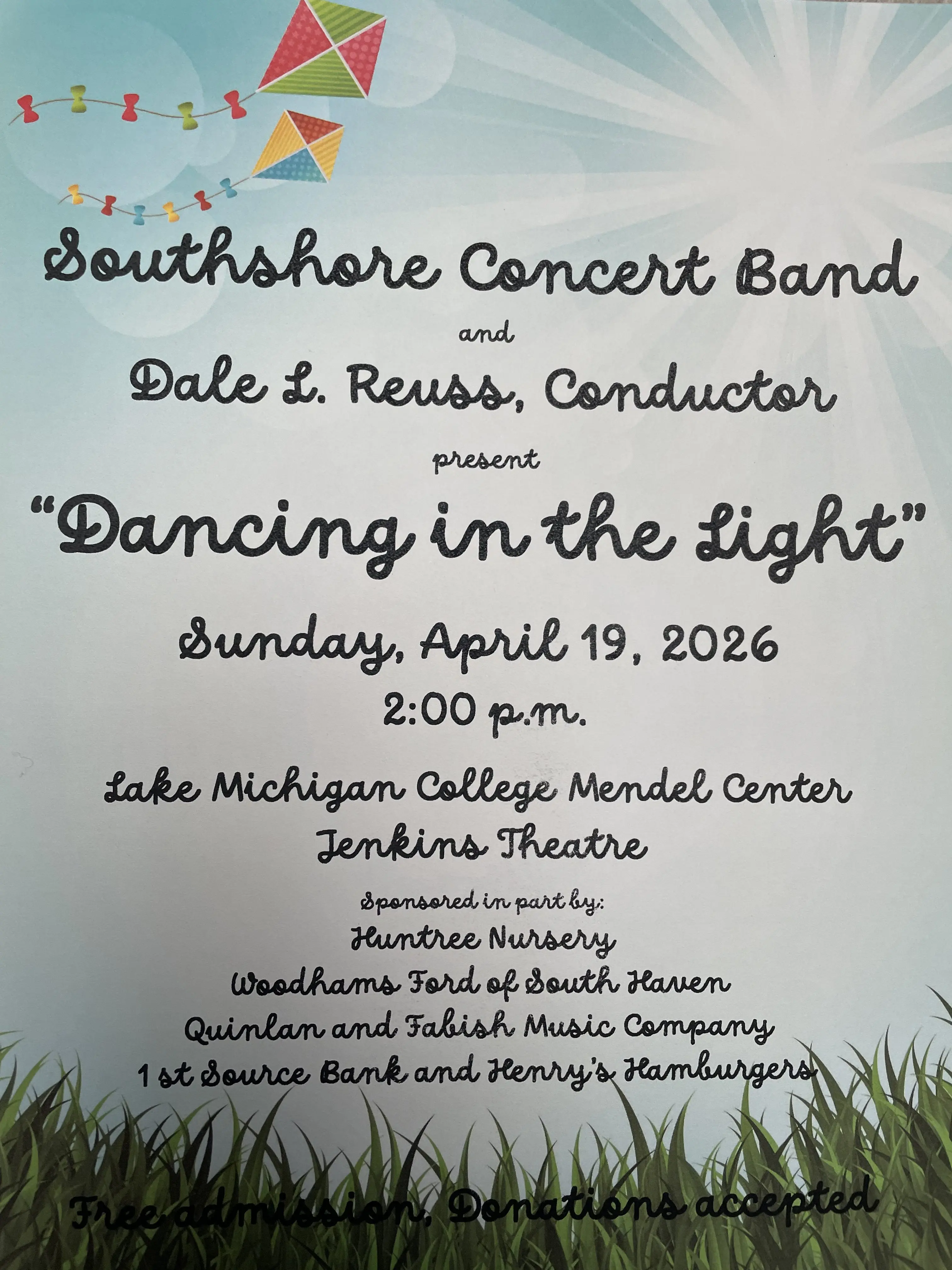 Southshore Concert Band, in its thirty-fourth season, and Conductor Dale L. Reuss, perform their annual spring concert titled “Dancing in the Light”.