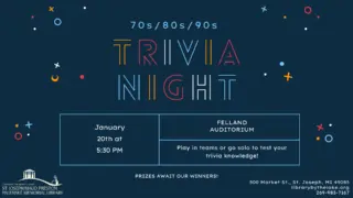 Find out more »est your knowledge of the 70’s, 80’s, & 90’s with our Trivia Night! Play individually or as a team and go for the glory of Master(s) of Trivia! ... ...Read Full Story