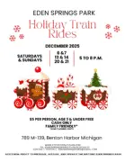 Bring family and friends to enjoy a wintery evening with a miniature train ride, festive Christmas lights and decorations at our historic park. (Some flashing lights.) Saturdays and Sundays Only from 5 to 8 p.m. ... ...Read Full Story