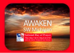 For the first time in southwest Michigan, a 2-day prayer event will be held at the John and Dede Howard Ice Arena–Thursday and Friday, May 7 and 8 at 6 PM. On America’s 250-year anniversary, Michigan believers are gathering to pray, repent, and worship God. Live music will play by Elkhart Life Worship Team. Friday’s key note speaker is Pastor Mark Johnson. Reserve your FREE spot on Eventbrite!