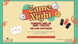 Find out more »Join the fantastic crew from Michiana Boardgamery for this 13+ teen/ adult Game Night! Bring a friend or two and meet others at this fun event where we’ll learn and play new-to-you board games.... ...Read Full Story