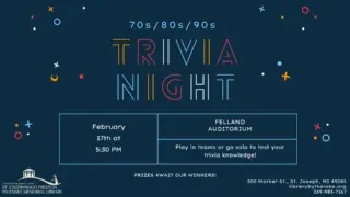 Find out more »Test your knowledge of the 70’s, 80’s, & 90’s with our Trivia Night! Play individually or as a team and go for the glory of Master(s) of Trivia! ** Rescheduled from January 20th **... ...Read Full Story