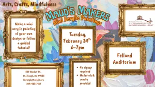 Find out more »Join us for our “Arts, Crafts, & Mindfulness” Club! This all ages (13 and up) program meets on the 4th Tuesday of the month. Grab a brush for our mini acrylic paintings!... ...Read Full Story