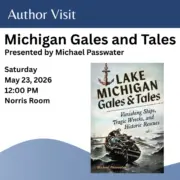 Find out more »The waters of Lake Michigan are a calm and tranquil place–until they aren’t. Purdue professor and Shipwreck historian Michael Passwater discusses his most recent publication Lake Michigan Gales & Tales. Copies of the book will be available for sale at the event. ... ...Read Full Story